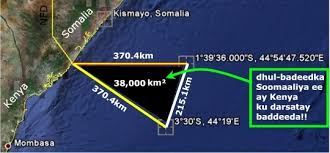 تريد الصومال، التي تقع شمال شرق كينيا، توسيع حدودها البحرية مع كينيا على طول خط الحدود البرية، في الاتجاه الجنوبي الشرقي. تريد كينيا أن تتجه الحدود إلى البحر في خط مستقيم شرقًا - وهو ترسيم من شأنه أن يمنحها حصة أكبر من المحيط. يمتد مثلث الماء المتنازع عليه على مساحة تزيد عن 100،000 كيلومتر مربع.