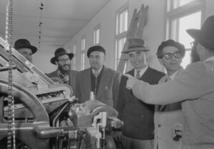عمدة اللد يزور مدرسة الصنايع بكفار حباد، في أواخر الستينات.