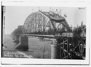 On April 5, 1920, two of the bridge's eighteen metal spans were detonated by guerrilla units retreating from Khabarovsk during the provocative speeches of the Japanese military in the midst of the Civil War. Consequently, the Trans-Siberian railway was disrupted for a period of 5 years.