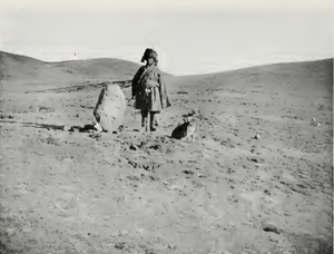 Boundary pillar between Tibet and China at Bum La (Ningching Shan), west of Batang (Teichman, 1922)