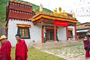 Densely forested with grass plains, its convergence of six valleys and four rivers supported independent Kham polities of Tibetan warrior kingdoms together with Tibetan Buddhist monastic centers.[1] The early trading route between Central Tibet and China traveled through Kham,[2] and Kham is said to be the inspiration for Shangri-La in James Hilton's novel.[3]
