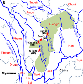 As a frontier region, Kham integrated and "Tibetanized" early Mongolian and Chinese populations.[1] After Güshri Khan's invasion of Kham in 1639, Mongolian people and Amdo's tribal people resettled to the region.[3]