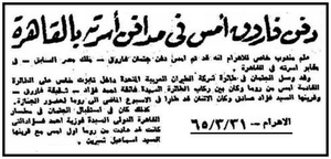 فاروق الأول وُلِد: 11 فبراير 1920 توفي: 18 مارس 1965
