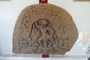 A Mora stone slab found at the Mathura-Vrindavan archaeological site in Uttar Pradesh, held now in the Mathura Museum, has a Brahmi inscription. It is dated to the 1st century CE and mentions the five Vrishni heroes, otherwise known as Saṃkarṣaṇa, Vāsudeva, Pradyumna, Aniruddha, and Samba.[60][61][62]