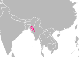 The term "Kuki" is an exonym: it was used by Bengalis to refer to the tribes inhabiting Patkai–Arakan Yomas, the eastern extension of the Himalayas running north–south between India and Myanmar.[7] The term is witnessed in the chronicles of Tripura from the reign of Dhanya Manikya (ح. 1490–1515) and fairly regularly afterwards.[8] The Tibetan Buddhist writer Taranatha (1575–1634) wrote a description of the Kuki (Ko-ki) country, including in it almost the entire northeastern India.[9] The term also occurs in traditional Meitei hymns where the Kuki king is praised along with the Meitei king.[10]