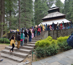- Hadimba Temple - This pagoda-style temple is located in the Dungri forest above Manali. It houses the footsteps of Hadimba Devi on a rock inside. It was built by Raja Bahadur Singh in 1553 A.D.[46]
