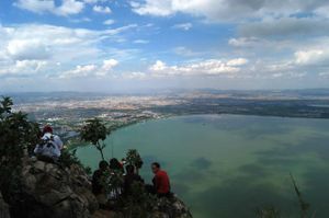 Situated in a fertile lake basin on the northern shore of the Lake Dian and surrounded by mountains to the north, west, and east, Kunming has always played a pivotal role in the communications of southwestern China. Lake Dian, titled as "the Pearl of the Plateau", is the sixth largest fresh water lake in China, is the largest lake in Yunnan and has an area of approximately 340 متر كيلومربع (130 ميل مربع). Kunming's highest point is Mazong Ridge of the Jiaozi Mountain in Luquan with an elevation of 4،247 متر (13،934 أقدام), and its lowest point is the joint of the Xiao River and the Jinsha River in Dongchuan District, with an elevation of 695 متر (2،280 أقدام). Its downtown area is 1،891 متر (6،204 أقدام) above sea level.
