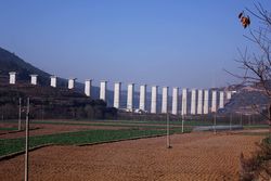 الإنشاء ثنائي المسار للقطاع من کون‌مینگ إلى گوانگ‌تونگ من سكة حديد چنگدو–کون‌مینگ في آن‌ننگ في 2012.