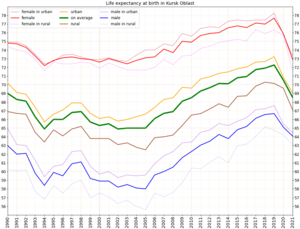 Total — 68.56 years (male — 64.09, female — 72.94)