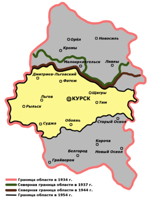 أبلاست كورسك (روسية: Курская область, النطق Kurskaya oblast; النطق الروسي: [ˈkurskəjə ˈobləsʲtʲ]) هو أحد الكيانات الفدرالية في روسيا. Its administrative center is the city of Kursk. As of the 2021 Census, Kursk Oblast had a population of 1,082,458.[8] ويحوي المدن والقرى التالية: دميترييڤ-لگوڤسكي، فاتيج، كورشاتوڤ، كورسك، لگوڤ، اوبيان، رايلسك، شتشيگري، سودجا، جيليزنوگورسك، كورسك أوبلاست،