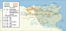 Map of the fall of the Aghlabid Emirate to the Kutama led by Abu Abdallah