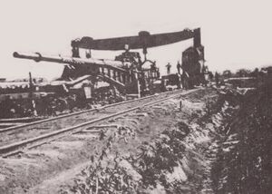 The longest-ranged and longest-barreled of the heavy guns deployed in World War I was the Paris Gun, which was used to bombard Paris from a distance of over 130 كيلومتر (81 mi). The gun had a bore diameter of 211 mm (8.3 in) and a barrel length of 34 متر (112 ft). It was fired from concealed fixed positions in the forest of Coucy.[15][صفحة مطلوبة]
