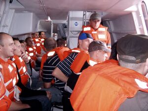 In the United States, the United States Coast Guard ensures the proper type and number of lifeboats are in good repair on large ships.[بحاجة لمصدر]