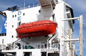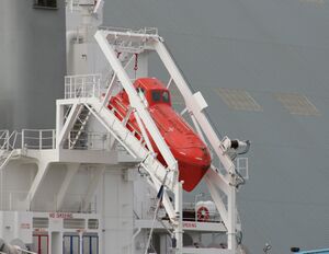Some ships have a freefall lifeboat stored on a downward sloping slipway normally on the stern of the vessel. These freefall lifeboats drop into the water when the holdback is released. Such lifeboats are considerably heavier as they are strongly constructed to survive the impact with water. Freefall lifeboats are used for their capability to launch nearly instantly, and high reliability in any conditions. Since 2006 they have been required[8] on bulk carriers that are in danger of sinking too rapidly for conventional lifeboats to be released. Seagoing oil rigs are also customarily equipped with this type of lifeboat.[بحاجة لمصدر]