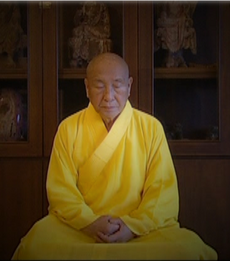 Traditional Chan Buddhist Grand Master Wei Chueh in Taiwan, sitting in meditation.