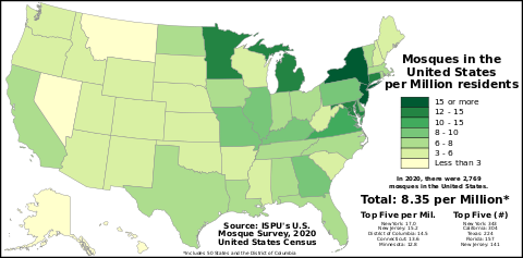 - ^ A research on the growth and development of American mosques in 2020 Retrieved 8 March 2023