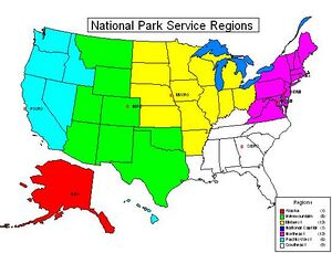 مصلحة المنتزهات الوطنية الأمريكية divides the U.S. into the following regions for U.S. National Park purposes:[15][16]