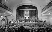 Later that day, under pressure from Moscow, on 17 June 1940, Merkys appointed Justas Paleckis prime minister and resigned soon after. Paleckis then assumed presidential duties, and Vincas Krėvė was appointed prime minister.[12] The Communist Party was legalized again and began publication of its papers and staging meetings to support the new government. Opposition organizations and newspapers were outlawed, and ties abroad cut. On 14–15 July, elections took place for a "People's Seimas." The only contender was the Union of the Working People of Lithuania, a front for the Communists. Citizens were mandated to vote, and the results of the elections were likely falsified. At its first meeting on 21 July, the new People's Seimas declared that the Lithuanian people desired to join the Soviet Union. Accordingly, it unanimously changed Lithuania's official name to the Lithuanian Soviet Socialist Republic (LSSR) and formally petitioned to join the Soviet Union as a constituent republic. Resolutions to start the country's Sovietisation were passed the same day. On 3 August, a Lithuanian delegation of prominent public figures was dispatched to Moscow to sign the document by which Lithuania acceded to the USSR. After the signing, Lithuania was annexed to the USSR.[13] On 25 August 1940, an extraordinary session of the People's Seimas reorganized itself as the provisional Supreme Soviet of the LSSR, ratified the Constitution of the LSSR, which in form and substance was similar to the 1936 Constitution of the Soviet Union.