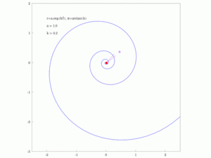 - Complex exponential function: The exponential function exactly maps all lines not parallel with the real or imaginary axis in the complex plane, to all logarithmic spirals in the complex plane with centre at : The pitch angle of the logarithmic spiral is the angle between the line and the imaginary axis.