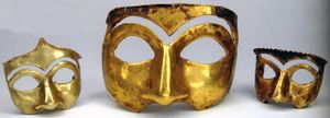 أقنعة ذهبية، عثر عليها في كالاكاره، لرستان. النصف الأول من الألفية الأولى ق.م. المتحف الوطني في إيران.