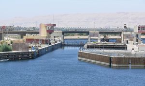 أنشئت قناطر إسنا القديمة في عهد الخديوي عباس حلمي الثاني سنة 1908 عند الكيلو 169 علي نهر النيل للتحكم في تدفق المياه أثناء فترة الفيضان وتحسين الملاحة في مجري النهر وضمان استمرارية ري زمام ترعتي أصفون والكلابية. فيما أنشئت قناطر إسنا الجديدة سنة 1994 خلف القناطر القديمة بحوالي 1200 م، وذلك لتوفير المياه اللازمة لسد الاحتياجات المتزايدة للري، وكذلك توليد الطاقة الكهربائية، فضلاً عن تطوير الملاحة النهرية بإنشاء هويس يسمح بمرور وحدتين ملاحيتين كبيرتين في نفس الوقت، وزيادة الحمولة علي الطريق الذي يربط بين ضفتي نهر النيل إلي 70 طن بدلاً من 20 طن.[120][121]
