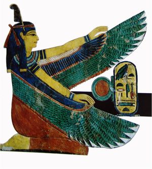 تمثل بهيئة سيدة تعلو رأسها ريشة النعام رمز العدالة، وكما في الصورة نجدها ممسكة مفتاح الحياة (عنخ) في أحد يديها وتمسك في يدها الأخرى صولجان الحكم