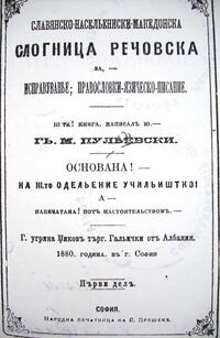 The latter half of the 18th century saw the rise of modern literary Macedonian through the written use of Macedonian dialects referred to as "Bulgarian" by writers.[11] The first half of the 19th century saw the rise of nationalism among the South Slavic people in the Ottoman Empire.[12] This period saw proponents of creating a common church for Bulgarian and Macedonian Slavs which would use a common modern Macedo-Bulgarian literary standard.[13][14]
