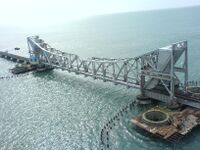The first railway line in South India was laid between Madras and Arcot, which was opened for traffic on 1 July 1856.[185] The line was constructed by the Madras Railway Company formed in 1845.[185] The railway station at Royapuram, the first in South India, was built in 1853 and served as the headquarters of the Madras Railway Company.[185] The Great Southern of India Railway Company was set up in the United Kingdom in 1853.[185] and had its headquarters at Trichinopoly where it constructed its first railway line between Trichinopoly and Negapatam in 1859.[185] The Madras Railway Company operated standard or broad-gauge railway lines while the Great South Indian Railway Company operated metre-gauge railway lines.[186] In 1874, The Great Southern Indian Railway Company merged with the Carnatic Railway Company (established in 1864) and was renamed the Southern Indian Railway Company.[187] The Southern Indian Railway Company merged with the Pondicherry Railway Company in 1891 while the Madras Railway Company merged with the Southern Mahratta Railway Company in 1908 to form the Madras and South Mahratta Railway Company.[185] A new terminus was built at Egmore for the Madras and South Mahratta Railway Company.[185] In 1927, the South Indian Railway Company shifted its headquarters from Madurai to Chennai Central. The company operated a suburban electric train service for Madras city from May 1931 onwards.[187] In April 1944, the Madras and South Mahratta Railway Company was taken over by the Madras Government. In 1947, there were 4،961 ميل (7،984 km) of railway in the presidency, in addition to 136 ميل (219 km) of district board lines.[147] Madras was well-connected with other Indian cities like Bombay and Calcutta and with Ceylon.[188] The 6،776-قدم (2،065 m) Pamban railway bridge connecting Mandapam on the Indian mainland with Pamban island was opened for traffic in 1914.[189] The Nilgiri Mountain Railway was inaugurated between Mettupalayam and Ootacamund in 1899.