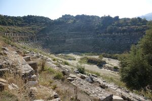 The territory around Magnesia was extremely fertile, and produced excellent wine, figs, and cucumbers.[2] It was built on the slope of Mount Thorax,[3] on the banks of the small river Lethacus, a tributary of the Maeander river upstream from Ephesus. It was 15 miles from the city of Miletus.[4][5] The ruins of the city are located west of the modern village Tekin in the Germencik district of Aydın Province, Turkey.