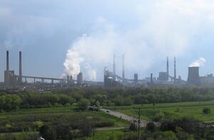 There are many coal mines in and around the city. Makiivka's modern industries include one of the largest integrated iron and steel works in Ukraine. There are also other metalworking and coke-chemical plants and factories for pneumatic machinery, shoemaking, and food processing. The city is rather dispersed, with numerous residential communities surrounding individual industrial plants over an extensive area. It is gradually extending to form a single metropolitan area with the nearby city of Donetsk, which lies just a few miles to the southwest. Makiivka is home to the Donbas National Academy of Civil Engineering and Architecture.
