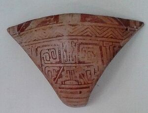 Travelers in the 1800s noted both the presence of mounds and the beauty of the ceramics found inside them or exposed on their sides.[9] Museums in Europe and the United States began to collect some of the larger and more beautiful pieces, the largest of which are funerary urns. Buried in house floors constructed on the tops of the mounds, the elaborately decorated urns contain the remains of significant individuals. When the individuals died, the flesh was cleared from their bones and the remains were placed in the urns, which were then topped with a bowl or platter.[10]
