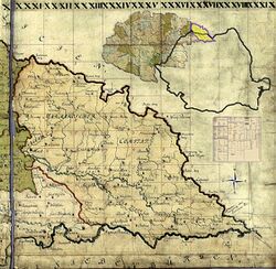 Marmaroscher Comitat on the map of the Habsburg Kingdom of Hungary, 1780–1784. The present-day borders of Romania are projected to the historical map.
