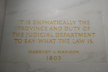 وهكذا تحول أمر ليس أصلا من إختصاص المحكمة العليا إلى شأن دستورى بالغ الأهمية هو فحص دستورية القوانين التى تصدرها السلطة التشريعية وإصدار حكم دستورى منه للجدل بشأن تلك الدستورية. وهذا بالضبط ما إنتزعته المحكمة العليا لنفسها حيث أنها لم تكن في الأصل محكمة دستورية كالتى توجد في مصر أو ألمانيا أو إيطاليا إلخ...