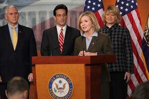 Blackburn opposed the Affordable Care Act (Obamacare), saying upon its passage, "freedom dies a little bit today."[37][101] She supported efforts to repeal the legislation.[102] In 2017, while arguing for its repeal, Blackburn falsely said that two of its popular provisions (protections for people with preexisting conditions and allowing adult children to be on their parents' health plans until they're 26) "were two Republican provisions which made it into the bill."[103] In her declaration that she would run for the Senate in 2018, she said that the failure to repeal the ACA was "a disgrace".[104]
