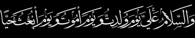 وَالسَّلَامُ عَلَيَّ يَوْمَ وُلِدْتُ وَيَوْمَ أَمُوتُ وَيَوْمَ أُبْعَثُ حَيًّا