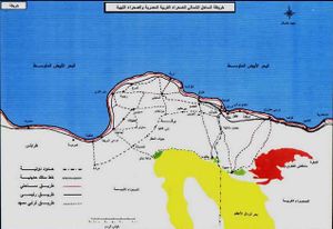 ويخترق السهل الساحلي طريق مرصوف، يمتد من حدود مصر إلى تونس، ويعد هذا الطريق وسيلة المواصلات العسكرية الرئيسية خلال العمليات في الصحراء الليبية.