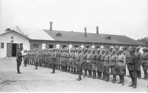 During World War I, it was occupied by Germany from 1915 to 1918. In 1916, the town was renamed to Mińsk Mazowiecki. In 1918, Poland regained independence and control of Mińsk. During the Polish–Soviet War, it was briefly occupied by the Russians on 16 August 1920, and then recaptured by the Poles the next day.[2] On 18 August 1920 Marshal Józef Piłsudski stayed in the town.[2] In the interbellum, the town enjoyed great development, and in 1937 the first electric train arrived. The 7th Lublin Uhlan Regiment was stationed in Mińsk Mazowiecki in the interbellum, and nowadays there is a museum dedicated to the unit in the town.