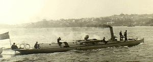 The contingent arrived in Suakin on 29 March and were attached to a brigade that consisted of Scots, Grenadier and Coldstream Guards. They subsequently marched for Tamai in a large "square" formation made up of 10,000 men. Reaching the village, they burned huts and returned to Suakin: three Australians were wounded in minor fighting. Most of the contingent was then sent to work on a railway line that was being laid across the desert towards Berber, on the Nile. The Australians were then assigned to guard duties, but soon a camel corps was raised and 50 men volunteered. They rode on a reconnaissance to Takdul on 6 May and were heavily involved in a skirmish during which more than 100 Arabs were killed or captured.[4][5] On 15 May, they made one last sortie to bury the dead from the fighting of the previous March. Meanwhile, the artillery were posted at Handoub and drilled for a month, but they soon rejoined the camp at Suakin.[3]