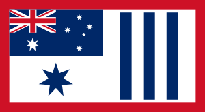 رفع العلم الأسترالي يوم 16 ديسمبر 1914 في أنگوروم، غينيا الجديدة.