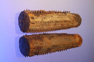 Ma Jun, a military engineer serving under Cao Wei, devised a siege weapon which threw large stones using a wheel. This device consisted of a drum wheel attached with a curved knife. When rotated, the stones which hung on the wheel would be cut loose by the knife and launched. It is not clear how well this device worked in practice. Successful tests with roof tiles instead of stones are mentioned, but according to Liang Jieming, this contraption never made it past the testing phase and could not have been possible with the technology available at the time.[30]