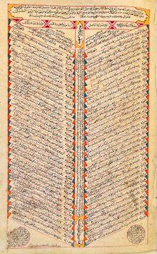The term millet, which originates from the Arabic milla, had three basic meanings in Ottoman Turkish: religion, religious community and nation.[7] The first sense derives from Quranic usage and is attested in Ottoman administrative documents into the 19th century.[7] Benjamin Braude has argued that before the period of 19th-century Tanzimat reforms, the word millet in the sense of religious community denoted the Muslim religious community or the Christians outside of the Ottoman Empire.[7] This view is supported by Donald Quataert.[8] In contrast, Michael Ursinus writes that the word was used to refer to non-Muslim subjects of the Ottoman Empire even before that time.[7] The term was used inconsistently prior to the 19th century.[7]