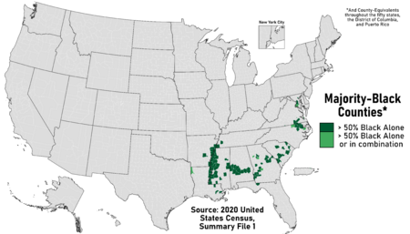 The majority of residents in several counties in the region are still Black, although more than 400,000 African Americans left the state during the Great Migration in the first half of the 20th century, moving to Northeastern, Midwestern, and Western industrial cities.[بحاجة لمصدر]