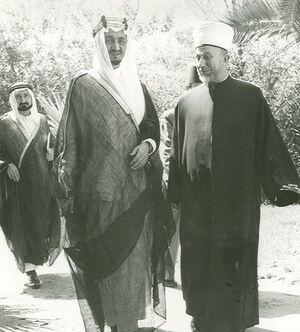 أمين الحسيني مع الملك فيصل بن عبد العزيز آل سعود.