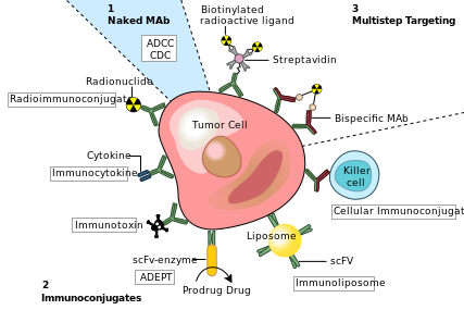 - ^ Modified from Carter P (November 2001). "Improving the efficacy of antibody-based cancer therapies". Nature Reviews. Cancer. 1 (2): 118–29. doi:10.1038/35101072. PMID 11905803. S2CID 10169378.