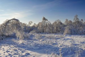The climate of Moscow Oblast is humid continental, with clearly expressed seasonality – short but warm summers and long, cold winters; the continentality increases from northwest to southeast. The period of the average temperature below 0 °C (32 °F) lasts 130–150 days, beginning in early or mid-November and ending in late March (or very early April). The average annual temperature varies from +3.5 °C (38.3 °F) to +5.5 °C (41.9 °F). The coldest months are January and February with the average temperature of −9 °C (16 °F) in the west and −12 °C (10 °F) in the east. With the arrival of arctic air, the temperature drops to below −20 °C (−4 °F) that may last up to twenty days during the winter, with the temperatures reaching −45 °C (−49 °F). The minimum temperature of −54 °C (−65 °F) was observed in Naro-Fominsk. Thaws often occur in December and February due to the Atlantic, and rarely the Mediterranean cyclones. The thaws usually last several days, and their total number from November to March can reach fifty. Snow starts accumulating in November, though sometimes in late October or early December, and disappears in mid-April (sometimes in late March). The snow depth is 25–50 سنتيمتر (9.8–19.7 in) and the soil freezes to 65–75 سنتيمتر (26–30 in). The warmest month is July with the average temperature of +18.0 °C (64.4 °F) in the northwest and +20.0 °C (68.0 °F) in the southeast. The maximum temperature of +40 °C (104 °F) was recorded in Kolomna during 2010 Northern Hemisphere summer heat waves. The average annual rainfall is 450–650 ميليمتر (18–26 in), the precipitation is maximal in the northwestern and minimal in the southeastern regions. The summer precipitation is usually 75 ميليمتر (3.0 in), but severe droughts occur once in 25–30 years, with less than 5 ميليمتر (0.20 in) of rain over June–August.[30][31]