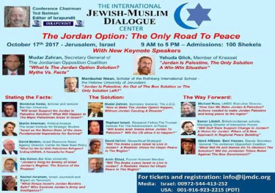 في 17 أكتوبر 2017، أقيم مؤتمر في القدس تحت عنوان: الخيار الأردني: السبيل الوحيد للسلام، والذي عُقد في القدس برعاية المركز الدولي للحوار اليهودي-الإسلامي، 17 أكتوبر 2017، بمشاركة مضر زهران والأكاديمي البريطاني-الأردني سامر لبدة، والمعارض الأردني عبد الإله المعلا، عن الجانب العربي. [6]