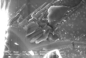 In March 1999, after receiving part of the meteorite from the British Museum in 1998,[4] a team from NASA's Johnson Space Center examined the Nakhla meteorite using an optical microscope and a powerful scanning electron microscope (SEM), revealing possibly biomorphic forms of a limited size range, among other features.[9][10] London's Natural History Museum, which holds several intact fragments of the meteorite, allowed NASA researchers to break one open in 2006, providing fresh samples, relatively free from Earth-sourced contamination. These scientists found an abundance of complex carbonaceous material occupying dendritic pores and channels in the rock, resembling the effects of bacteria observed in rocks on Earth.[9]
