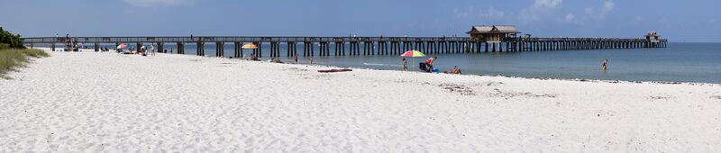 The beach on the coast of the Gulf of Mexico is more than 10 ميل (16 km) long and is known for its cleanliness and pristine white sand. In 2005, Naples was voted the best all-around beach in America by the Travel Channel.[42][43]