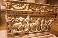 - تابوت إله الحب السكران عند اليونان المصنوع من الرخام. اكتُشف في صور في القرن الثاني الميلادي.