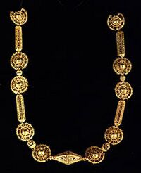 - بِلَط مُثَقَّبة من الذهب عُثر عليها بمعبد المسلة في جبيل ترجع إلى ما بين القرنين الثامن عشر والتاسع عشر قبل الميلاد.